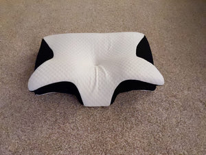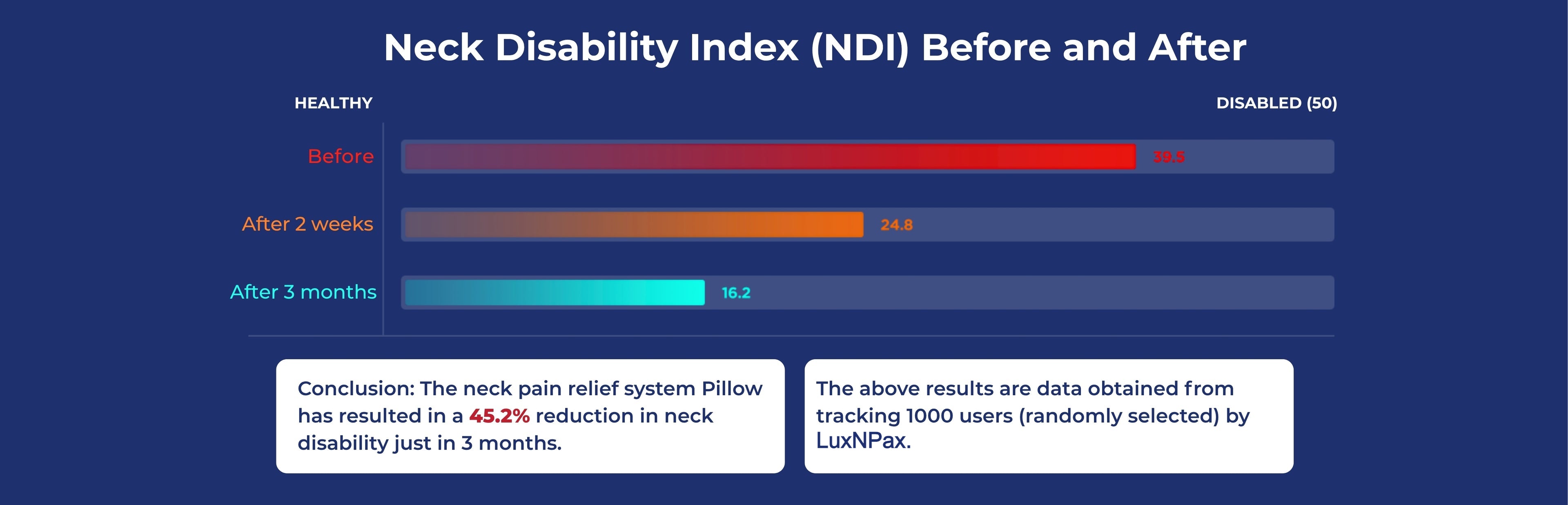 The LuxNPax Contour Relief Pillow is uniquely designed to provide optimal support and comfort, specifically targeting relief for cervical pain and neck stiffness.