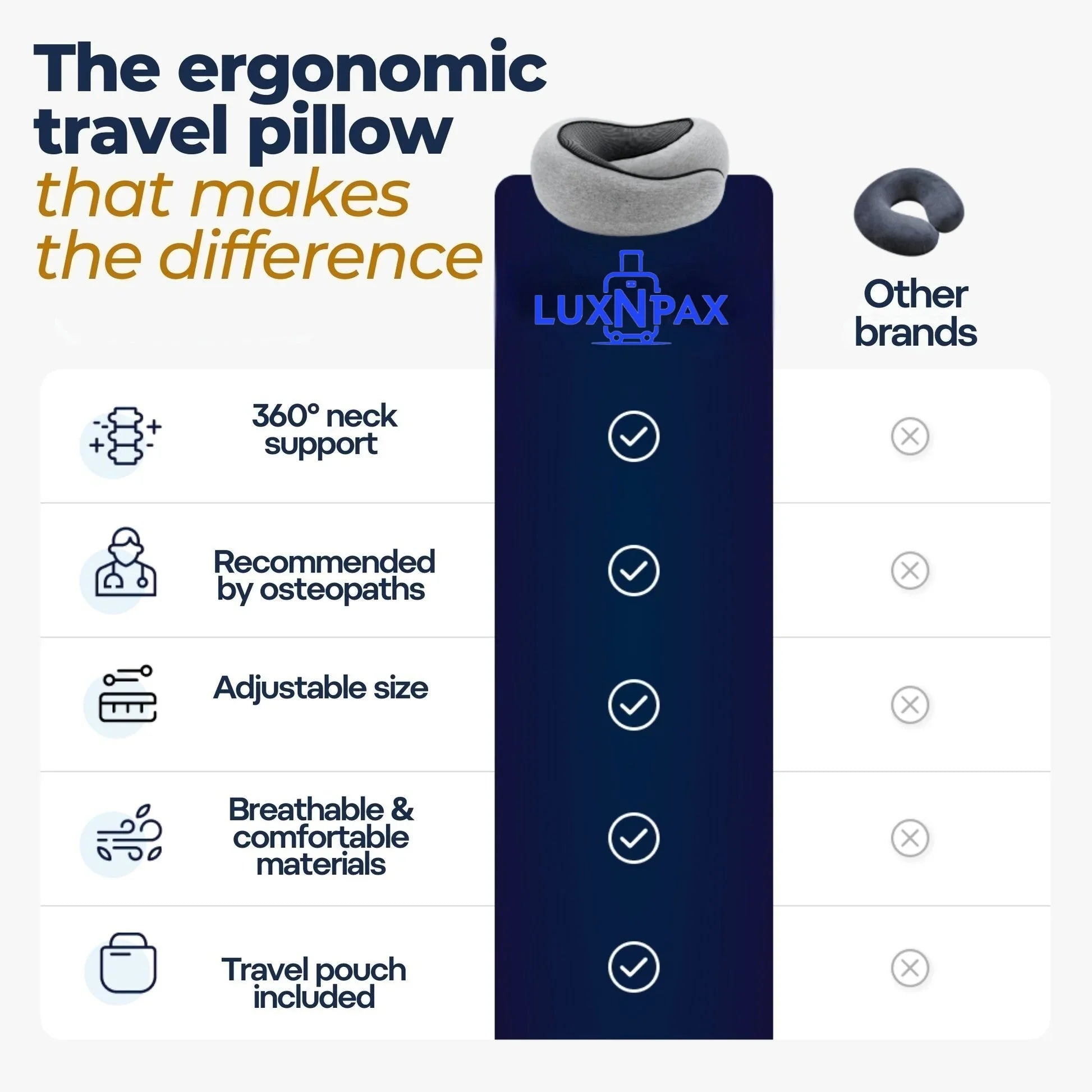 Discover how our ergonomic travel design supports your head and neck, prevents pain, and delivers lasting comfort far beyond standard U-shaped pillows.